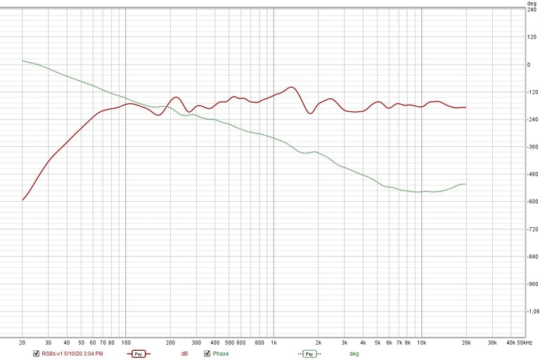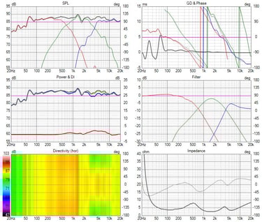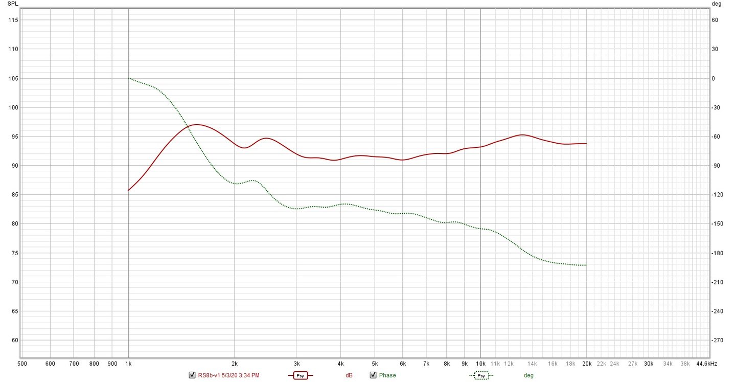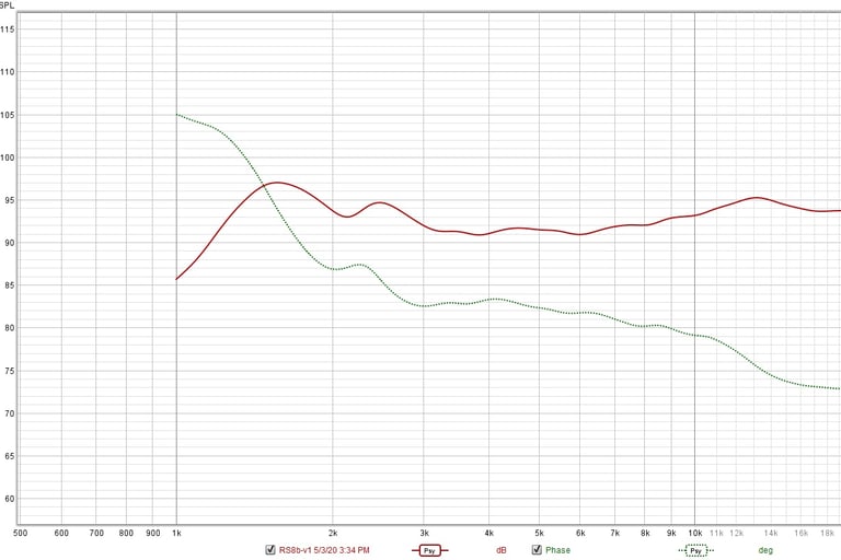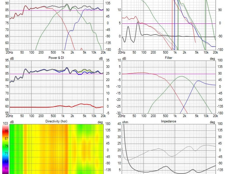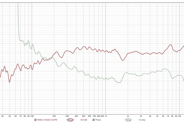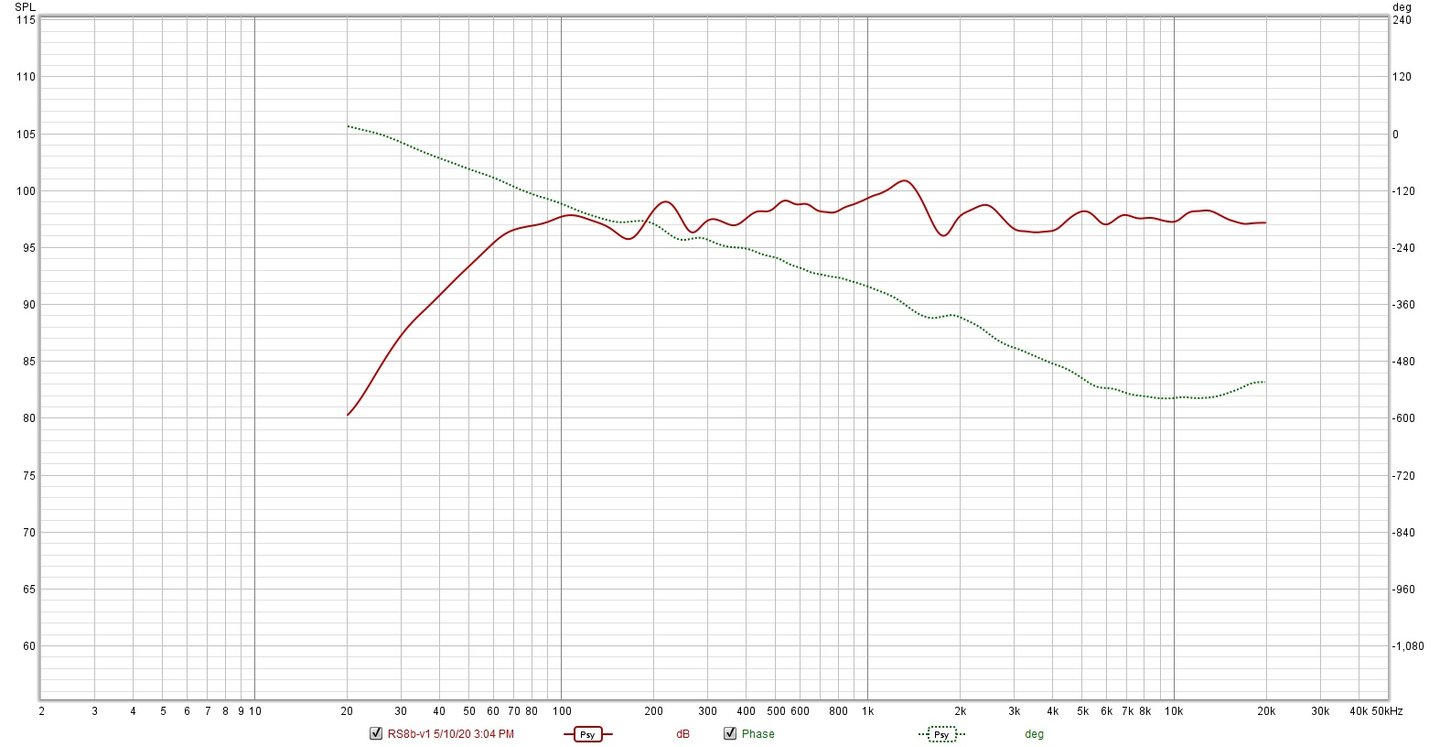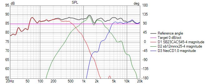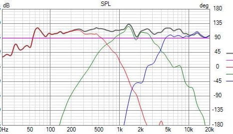 My biggest challenge is getting clean measurements, I don’t have a suitable space indoors and I live on a busy corner which makes outdoor measurements a challenge. Mostly I measure indoors and do my best to ignore room effects. When I made my outdoor measurements I put the DUT on top of a 6 foot ladder and tested at 95db level because of the street noise. These are the measurements used for my final simulation and my completed system FRD. Overall I’m satisfied with the results, there is a wiggle between 1KHz and 2KHz. I have no doubt this is an edge diffraction on the midrange and I if I had mounted the driver closer to one edge it might have gone away.