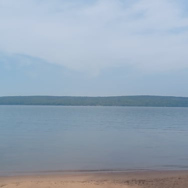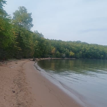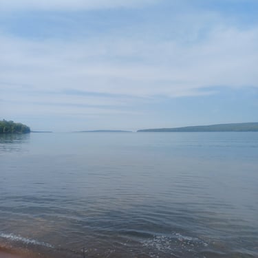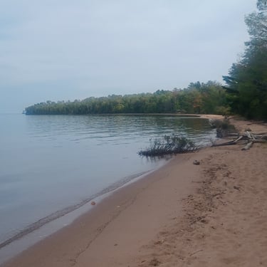 I stopped at the Washburn Lakefront Walking Trail and stretched my legs for about ten minutes. I had crossed into the central time zone, so I picked a desperately needed hour. From there I headed to Frog Bay Tribal National Park in the Red Cliff reservation. It was a 5-minute walk down to the beach that looks out on the Apostle Islands. I was expecting to see red sandstone cliffs; I guess they are somewhere else.
