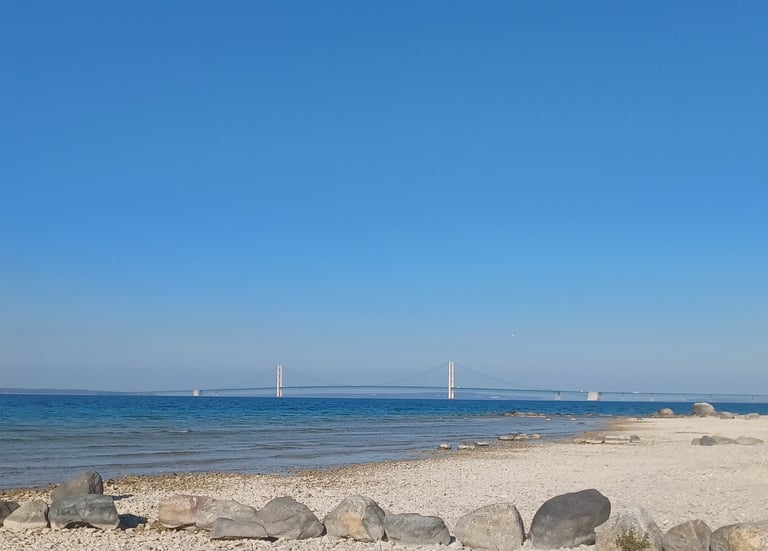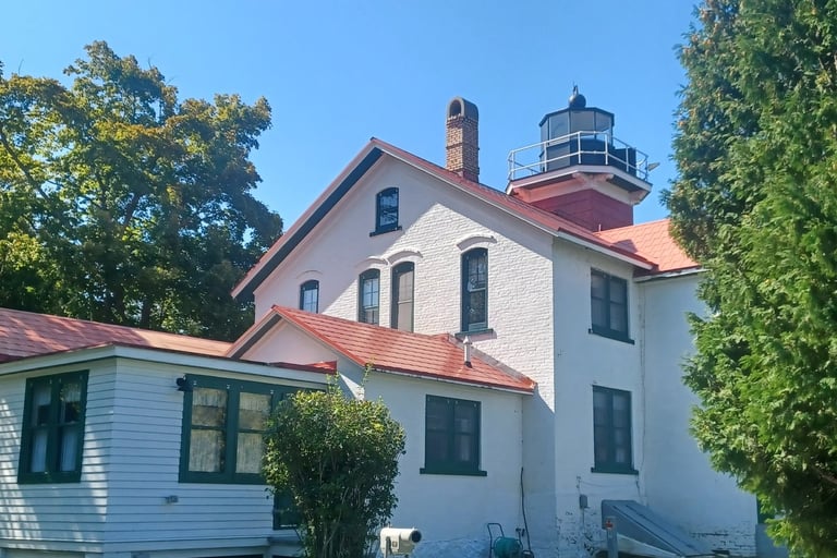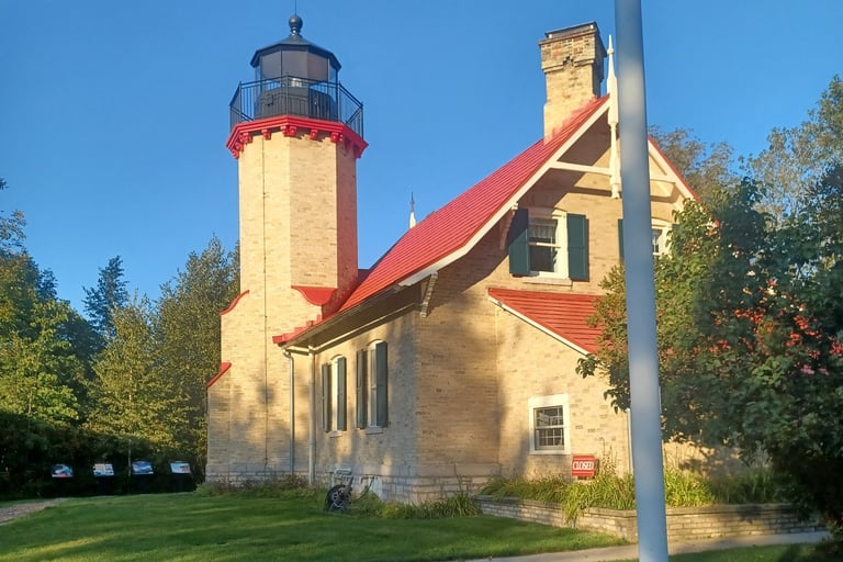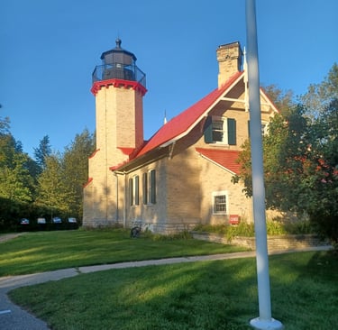 I just stayed on the coast road, stopping at one state park after another to take full advantage of my park passport. I swam in Lake Michigan at Sturgeon Bay Beach. My last stop was a rocky beach near the McGulpin Point Lighthouse, which is about a mile west of the Mackinac Bridge. I met a couple from downstate that were celebrating their fiftieth anniversary. We talked and joked for about forty-five minutes.
