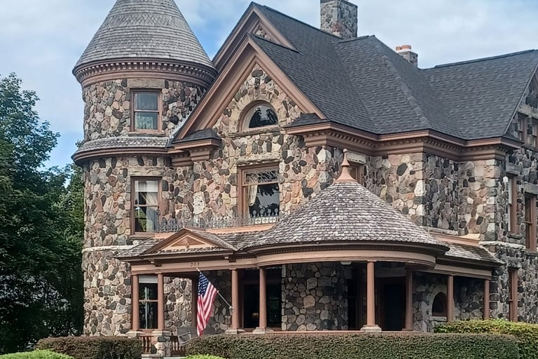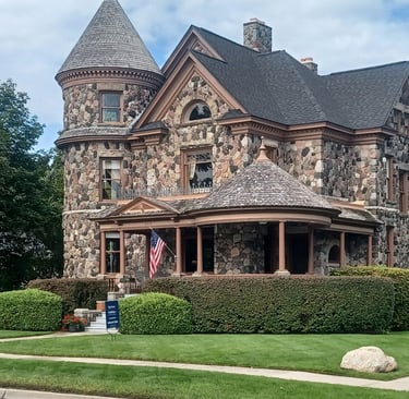 My next stop was Harrisville Harbor; there wasn't much there. I just took a fifteen-minute walk before heading towards Alpena. The most interesting thing I saw in Alpena was a very impressive stone Victorian house that was for sale. I eventually found the listing, and they are asking 1.8 million for it, but at least it is fully furnished.