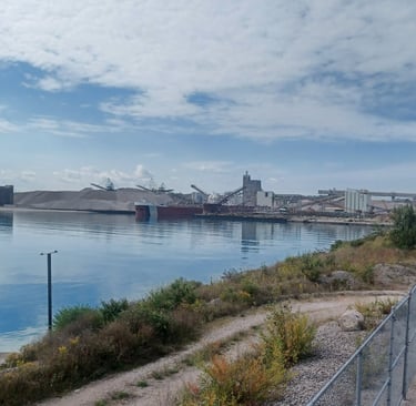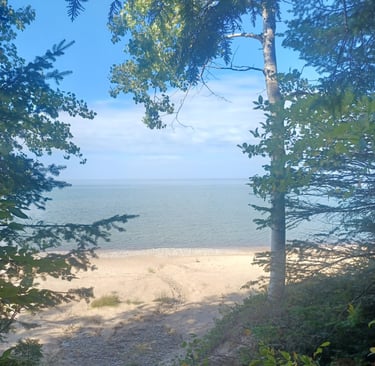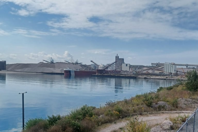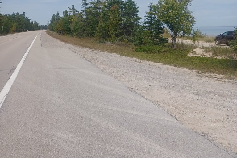 Alpena Marina was good for another fifteen-minute stretch before heading to Rogers City, MI, to see the largest limestone quarry in the world. It is called a calcite quarry, which grinds up the limestone and sorts it into various sizes. The stone is then transferred into self-loading ships at two docks. It turns out that Rogers City, MI, supplies the most Great Lake sailors of any city in the USA. While I was eating my lunch, two guys pulled up, and we struck up a long conversation. One was a retired postman, and the other was a county lawyer from Minnesota. I learned everything about being a postman. The postman was originally from Rogers City, but he lives an hour west. It turns out his father was a sailor and died in the 1965 crash of a calcite ship called the Cedarville that sank near the Mackinac Bridge. He took a look at my itinerary for the Upper Peninsula and noticed that I planned to see the Crisp Point Lighthouse. He took one look at my car and said it couldn’t handle the long dirt road to the lighthouse. He then recommended two other stops to replace it, and I thanked him.