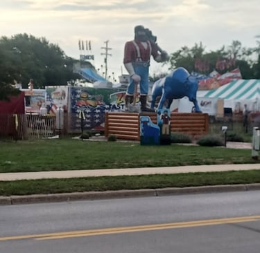 I drove up the M23 to Oscoda Township, MI, to see the Paul Bunyan and Babe the Blue Ox statue (one of many in Michigan), and there was a farmer’s market where I bought a jar of lavender jam and a sourdough chocolate chip cookie. I was actually twenty-five minutes ahead of schedule.
