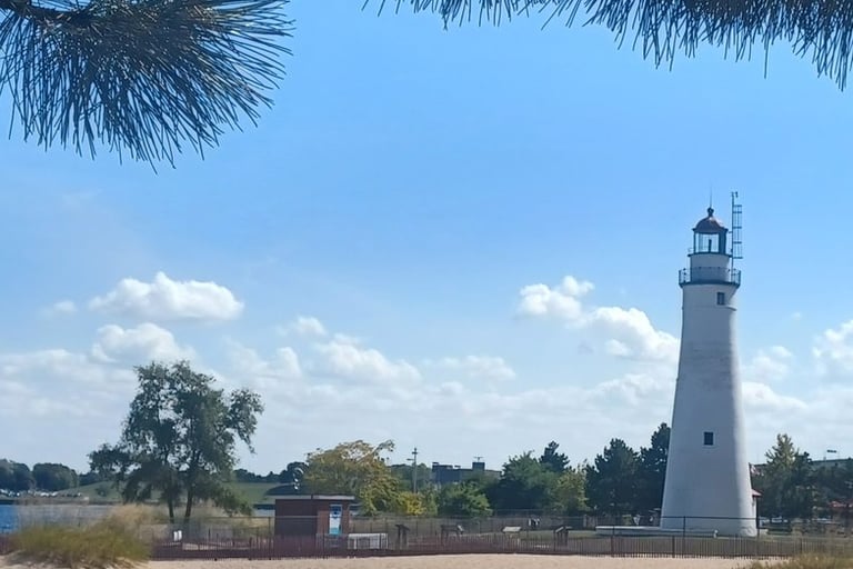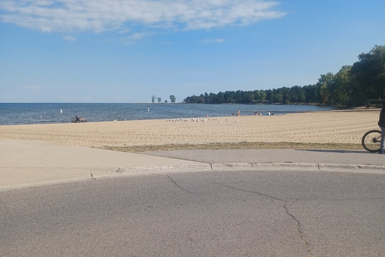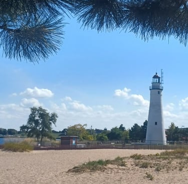 I spent about twenty minutes stretching my legs at the Fort Gratiot Lighthouse. It was interesting, especially the plaque that described the "White Hurricane" that lasted four days and the 40-foot waves that nearly knocked down the lighthouse. I never found the Huron Milling Co Steam Engine but I did take a swim in Lake Huron at Judge James H. Lincoln Memorial Park in Harbor Beach, MI. I realized that I missed swimming in Lake Erie, but it was too late to turn back. Swimming in four out of five of the Great Lakes will have to do. The water was clean and not too cold. The beach was sandy, so there was no need to wear shoes in the water. The water was very shallow; even at the warning buoys, it was still only three feet deep.