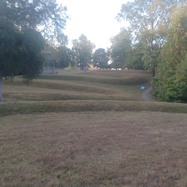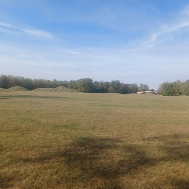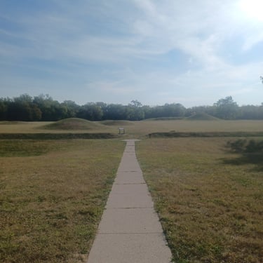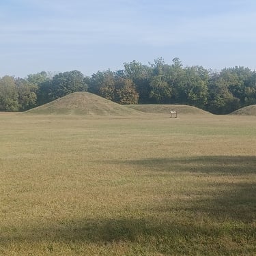 I visited two Hopewell sites in Chillicothe, OH. The first site was the Mound City Group, which is a large set of earthworks consisting of in excess of twenty burial mounds surrounded by an earthen wall. After spending about half an hour walking the site, I headed to the Hopeton Earthworks. It is quite large but not very interesting.