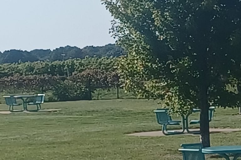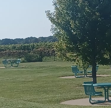 There are grape vineyards all along I-90 for about 75 miles west of Buffalo. When I stopped at the Ohio Welcome Center, there was a vineyard right behind it. There were some grapevines growing on the fence to the rest area, so I ate a bunch. They were good; they reminded me of the wild Concord grapes we used to eat when I was young.