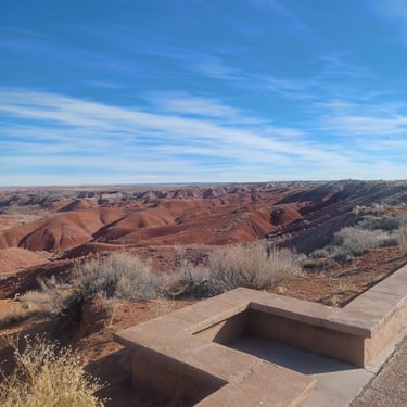 I got up early and went for breakfast at the hotel. I spoke with a fellow from the next table from Tucson and somewhere in Colorado. The news was on and it seemed to be making him unhappy. He said he stopped watching the news a few years ago and this was the first time he had seen it in a while. He then said, “I don’t know if you are a Trump fan.” To which I replied, “I’ve been a Democrat my whole life.” He said, “That guy is a nut job.” He told me he hit a pot hole on I40 last night that ripped the rear shocks out of his car and he was about to ride back to Tucson to the tune of $2000.00 with the tow truck driver. I asked why not stay and get it fixed in Gallup and he said it would take weeks and there was no way he stay there as it is the worst place in the world. I headed out to the car and there was a women walking two small dogs. I told her that it wasn’t fair that she had two dogs and I didn’t have any. We talked for a bit and I discovered she had moved from California to Atlanta and they had come back to drive the dogs to their new home. I point out that it was a one way move and she can never afford to move back. She agreed.