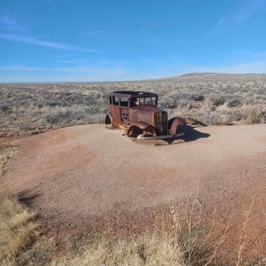 The next stop was Petrified Forest National Park in Arizona, at this point I think I’m really going to make it. Spent an hour with the beautiful scenery and ate my lunch so I could take my pain pill. The most interesting spot was the 2000 year old pueblo with the petroglyphs. I met two women at the agate bridge that were heading home to Tennessee. One was originally from Chicago and had just scattered her second husband’s ashes and the other was her next door neighbor who was from Corning, NY. We talked a while and had some laughs. When we walked back to the parking lot I pointed to my ride and one of them thought I was pointing at a different car and said I was riding in style and comfort. Her friend said no, it is the PT Cruiser and I said that I was riding just in style, not comfort. The road through the park ends a long way from the I40, once I got back to the highway I thought I might have backtrack to get to my next destination Sitgreaves National Forest. But much to my surprise I was on route 87, the exact road I need to be on.