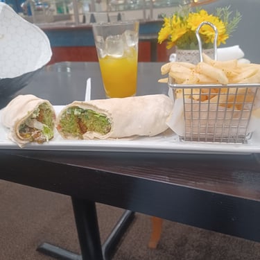 The apartment is a rather small one room studio so I went outside to give them some privacy and me some air. I sat by the little dog park for about an hour talking on the phone with a few friends. I did a quick search and found another Mediterranean restaurant nearby called Hana House. I asked Michael for the keys for one last drive in the PT Cruiser and drove around in circles till I found the restaurant. When I walked in the place was empty so asked, “where is everybody?” Mohamed answered that a huge party had just left, story of my life. Mohamed said he was from Palestine and I said I had eaten Palestinian food the night before. He asked where and when I told him Oasis in Gallup and he told me that they were his cousins. I sat down and ordered the falafel sandwich and mango juice, just like Mamoun's in New Haven. It came with a small serving of French fries and was just what I needed. When Mohamed asked how I liked my dinner I told him it was better than his cousin served me the night before.