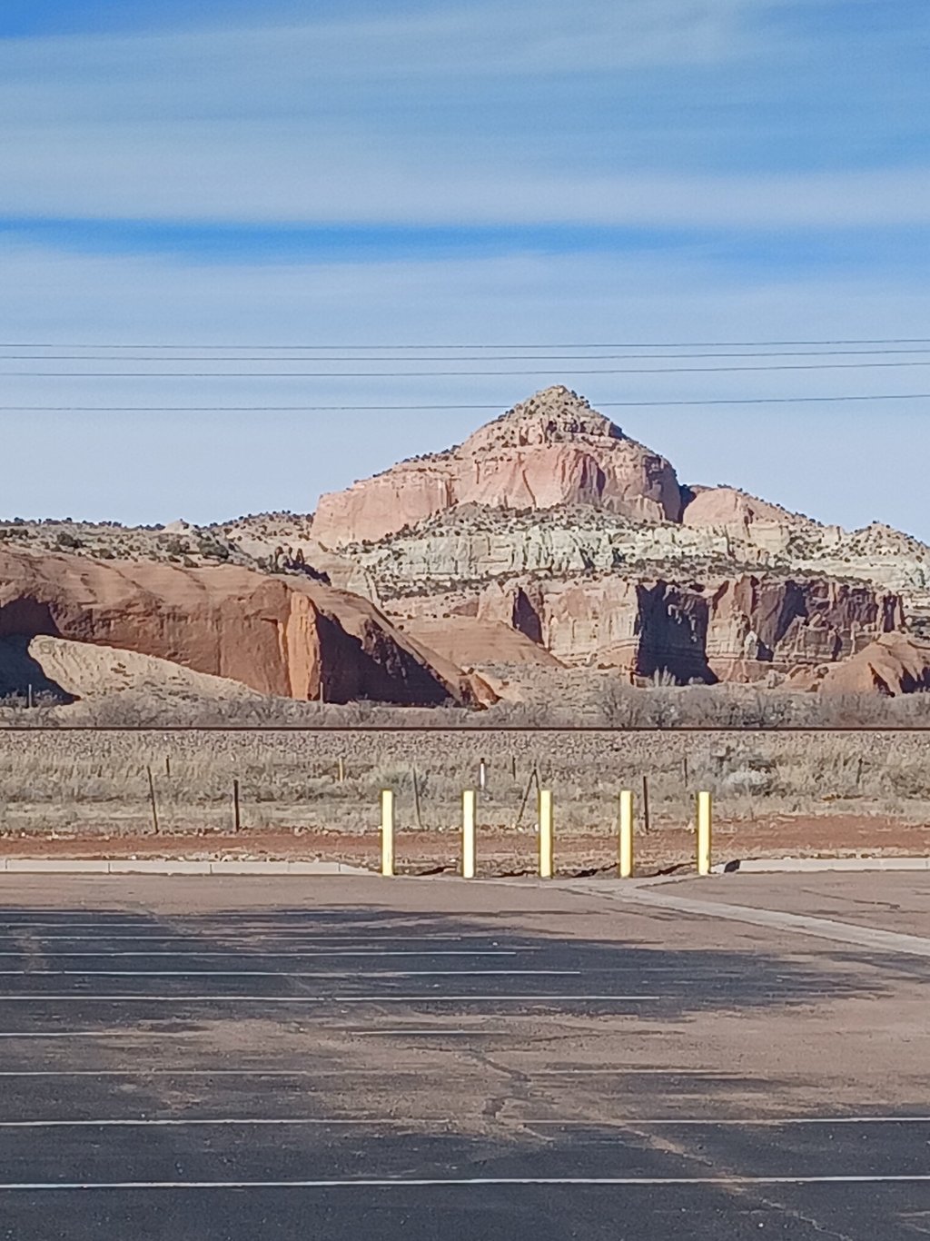 I’m ready for a break so I get off the highway and pull into a Navajo casino. On the way there I see a sign for Church Rock. Interesting, I saw some rock formations in the hills from the parking lot, no doubt one of them is it. Where the hell was the GPS sending me? I went into the casino to make a donation, I’m the only white man there, and maybe this is the only thing to for miles around, too bad no there isn’t money coming from outside the reservation. I finally found a video poker machine. I put $20.00 and start playing Jacks or Better. These machines are weak, the CT casinos would have used the $20.00 up in a matter of minutes, after 15 minutes I now had $25.00. I cashed out and headed to the food court. Bingo, they have fry bread I got one with a fizzy lemonade, $7.00 with a tip. I liked fry bread, pretty much fried dough with sugar on it, just a little greasier and not as crunchy. On the way back to the car I asked a couple if one of the rock formations was Church Rock, she pointed to the big one and says that’s it. He says no that the big one is Pyramid Peak and the smaller one with the three cylindrical towers is it.