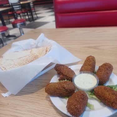 Back on I40 west and I see a sign for the Hampton Inn in Gallup, NM at exit 40. After I checked in I searched for food and found a Mediterranean restaurant called Oasis. I put the address into the GPS and start heading for it. It was sitting in the parking lot of a shopping center within sight of the motel. I ordered French fries, the falafel appetizer and some pita. I asked the waitress where she was from and she says local, I meant ask what from country was the food from and she told me the owners are Palestinian. It was all very good and these were the biggest falafels I’d ever seen.