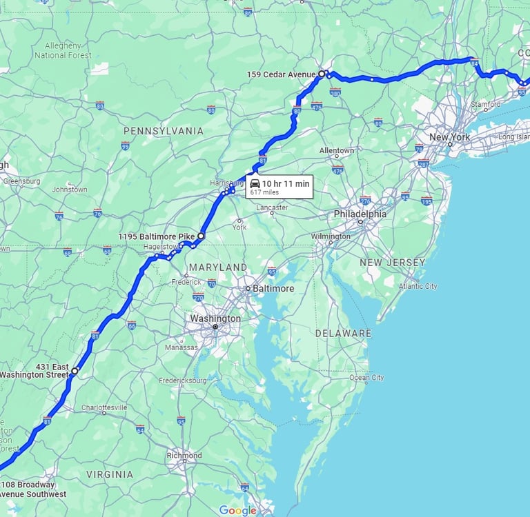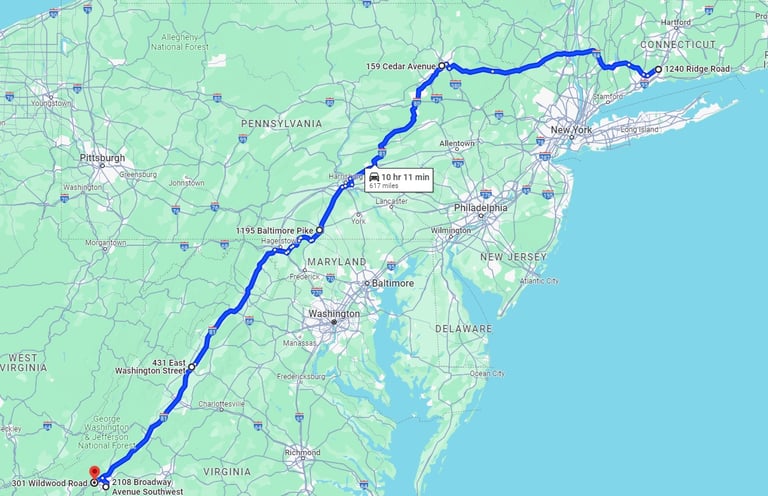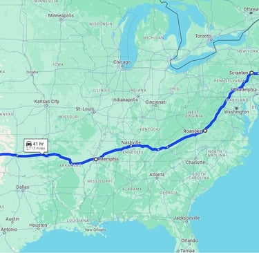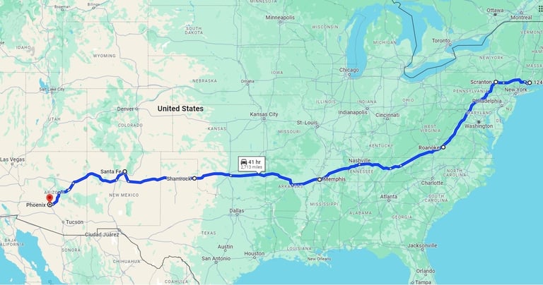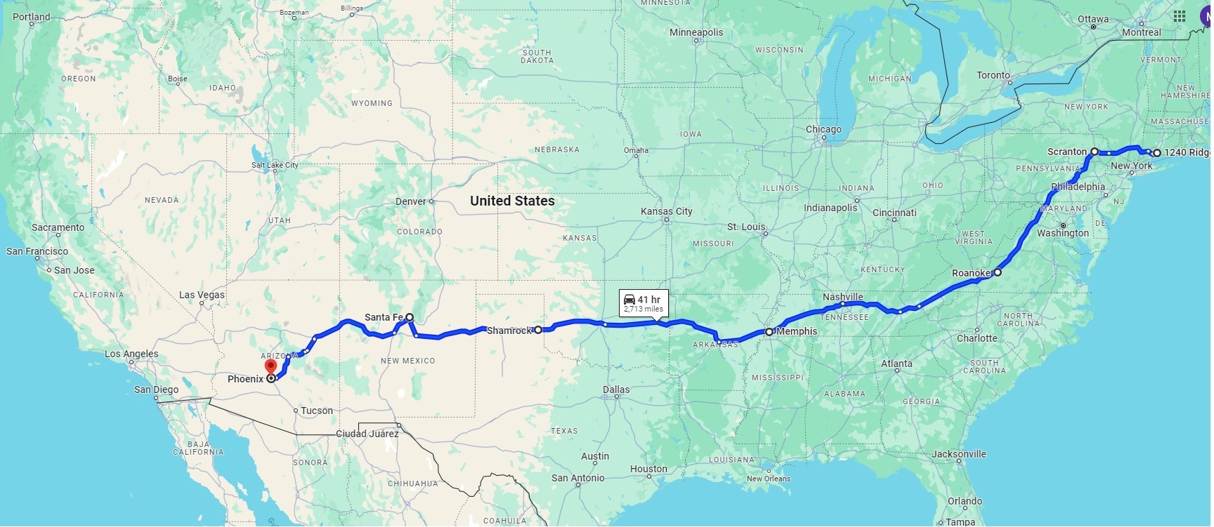 My first step was to decide how many days the trip should take. I settled on 5 days with about 500 miles a day of driving. One of my goals was to keep costs down so I decided to stay at Motel 6 all the way. I used Google maps to find a Motel 6 about every 500 miles. I then I looked for interesting places to stop about every two hours for rest stops.