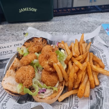 I drove the hour or so down to Savannah, GA. I parked the car close to noon, so once again I sat down on my cooler and ate the standard lunch. One of the tomatoes had transmuted itself into sauce, and the apple was half rotten. Looks like I needed to restock my supplies soon. I walked from the riverfront through the historic district past the campus of Savannah College of Art and Design. I had some pistachio ice cream and another espresso. I Googled the restaurant I had picked for dinner months before, and since it was Friday night, I decided to get there early. I drove out to Desposito's Seafood Restaurant in Thunderbolt, GA, which is about a 20-minute drive from the riverfront in Savannah. It is the last fish shack in area. I walked in, sat down at the bar, and I was the only one in the place. I had a Low Country Shrimp Po'Boy with fries. Both were good, then the waitress listed off the dessert options, which included a blueberry cobbler. I asked about peach cobbler, but they hadn’t made it in months. I said, “Since I’m in Georgia, the only cobbler I would accept was peach.
