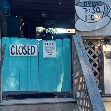 I then found a coffee shop on Tybee Island called Tybean Coffee. It was in a funny little group of shops and a bar on an unpaved parking lot in the woods, a very surfer kind of place. Unfortunately, it had closed at 1:00 PM. I drove back to Okatie, SC, to prepare to leave the Palmetto State in the morning.