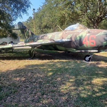 Heading home. Stopped at a BP station, but they were out of gas, so I got a bag of ice. I tried to fill up at the gas station next door, but after 10 minutes at the pump with only 2 gallons, I gave up. I stopped back at the Black Cat Coffee, and when I asked for an espresso poured into my cup, Coleen said, “That’s cute.” So I gave her the cup, and she said, “I will save it for you to use anytime you come in for coffee.” I didn’t bother to tell her that I don’t think I will ever return. I skipped my first planned stop, Neptune Beach, FL, because I was running late and needed to get to Charlotte, NC, for dinner that night. I did stop at Nutland and picked a pound of pecans for $11.00. I’m not sure just where it is; I just follow a billboard off the interstate. I tried samples of oranges, pecans, and boiled peanuts. The oranges had no flavor, and the boiled peanuts were salty and soggy, so I passed on both. I stopped at the National Museum of the Mighty 8th Airforce in Pooler, GA, for about 10 minutes. I didn’t have time to go inside but took pictures of F4A and a MIG 17. The next planned stop was Killian Park, which is just a couple of picnic tables next to a school.