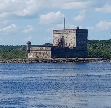 The only stop on the way of any interest was Fort Matanzas National Monument, which guarded the back way into St. Augustine. Unfortunately, the ferry over to the fort was not running that day, and most of the nature trail was closed. While I sat in the parking lot eating my lunch, I had a conversation with Troy, a treasure hunter up from the Gulf Coast. He lives on his boat (a 51-foot treasure boat) that he salvaged after a storm and restored. He charters fishing trips and dive cruises somewhere on the Gulf Coast of Florida. He rode out the storm on the boat, and as soon as the boat floated back off the dock, he jumped in his truck and headed north. He became quite interested in the rocket launch and gave me his business card so I could call him if I ran into anybody selling a ticket. Troy also pointed out a bees nest in the tree I had parked under and was surprised it wasn't dripping honey.