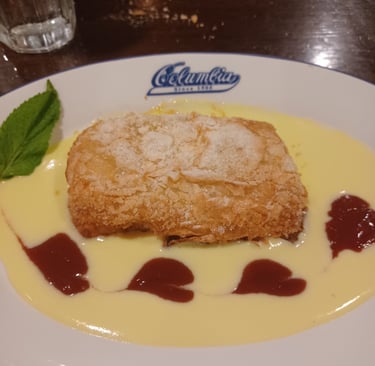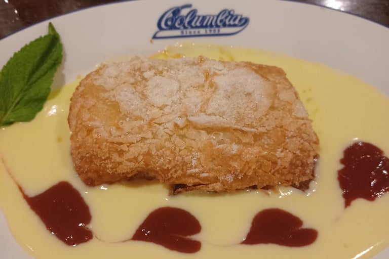 It was time to eat, so I went to Columbia, a Cuban restaurant run by its third-generation owners, which claims to be the oldest restaurant in Florida. It is a very swanky place with long waiting lists for tables. The hostess just handed me a menu and sent me up to the bar; no waiting for a table is another good reason to eat at the bar. I ordered the Cannelloni de Langosta. There were three on the plate that were stuffed with cheese, shrimp, lobster, and tiny scallops covered in a cheese sauce. It wasn't too much, so I still had room for the guava tart for dessert, which was unique and delicious.