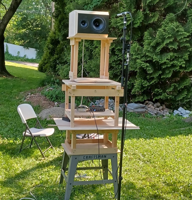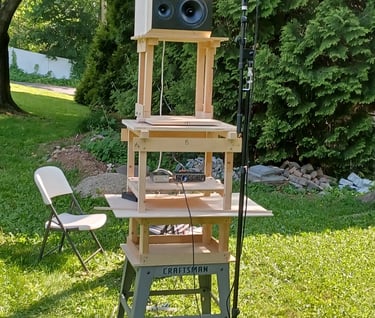 Now that the final enclosure is complete it can be used to make polar measurements and impedance measurements. These will be used to model a crossover. I use the pictured turn table which gets the speaker to a height above the ground of nearly 8 feet. My measurement rig consists of a Behringer UMC204HD USB Audio interface, a SoundID Reference measurement microphone from Sonarworks and REW. I use a Dayton DATS3 for impedance measurements. Then all this data is used in VituixCAD2 to make a crossover design. This is perhaps the longest part of the process. Once I get what I think is a good crossover I will order a single set of components and add other parts to get to the free shipping threshold.